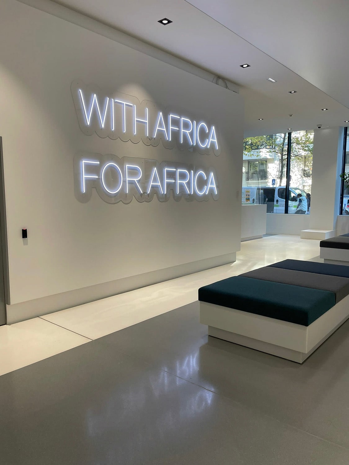 Notre studio a travaillé sur un graphisme inspiré du tissu Wax (un tissu en coton ciré, coloré, symbole fort de l’identité et de la mode africaine) pour incarner l’identité africaine du groupe.
