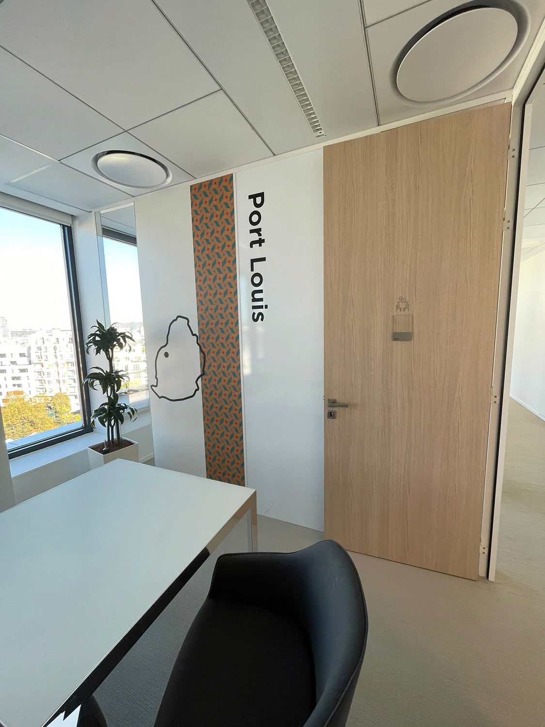 Pour son siège social situé à Boulogne Billancourt, CFAO nous a confié la réalisation de 600 m2 de vitrophanie, de signalétique sur 8 étages et d’une enseigne intérieure néon.