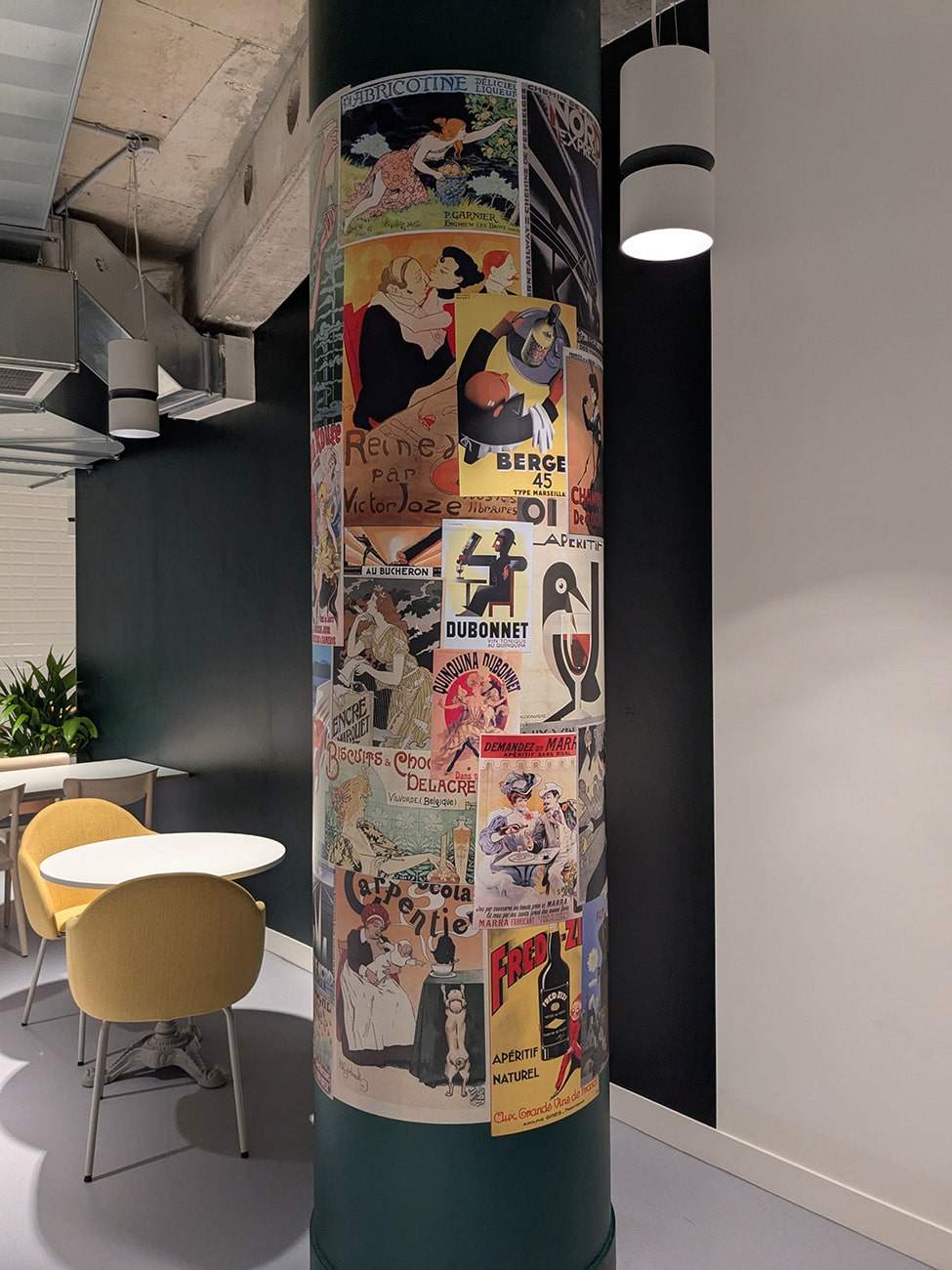 • Une colonne Morris, symbole de la Belle Epoque, sur laquelle a été posée en patchwork une cinquantaine d’affiches imprimées