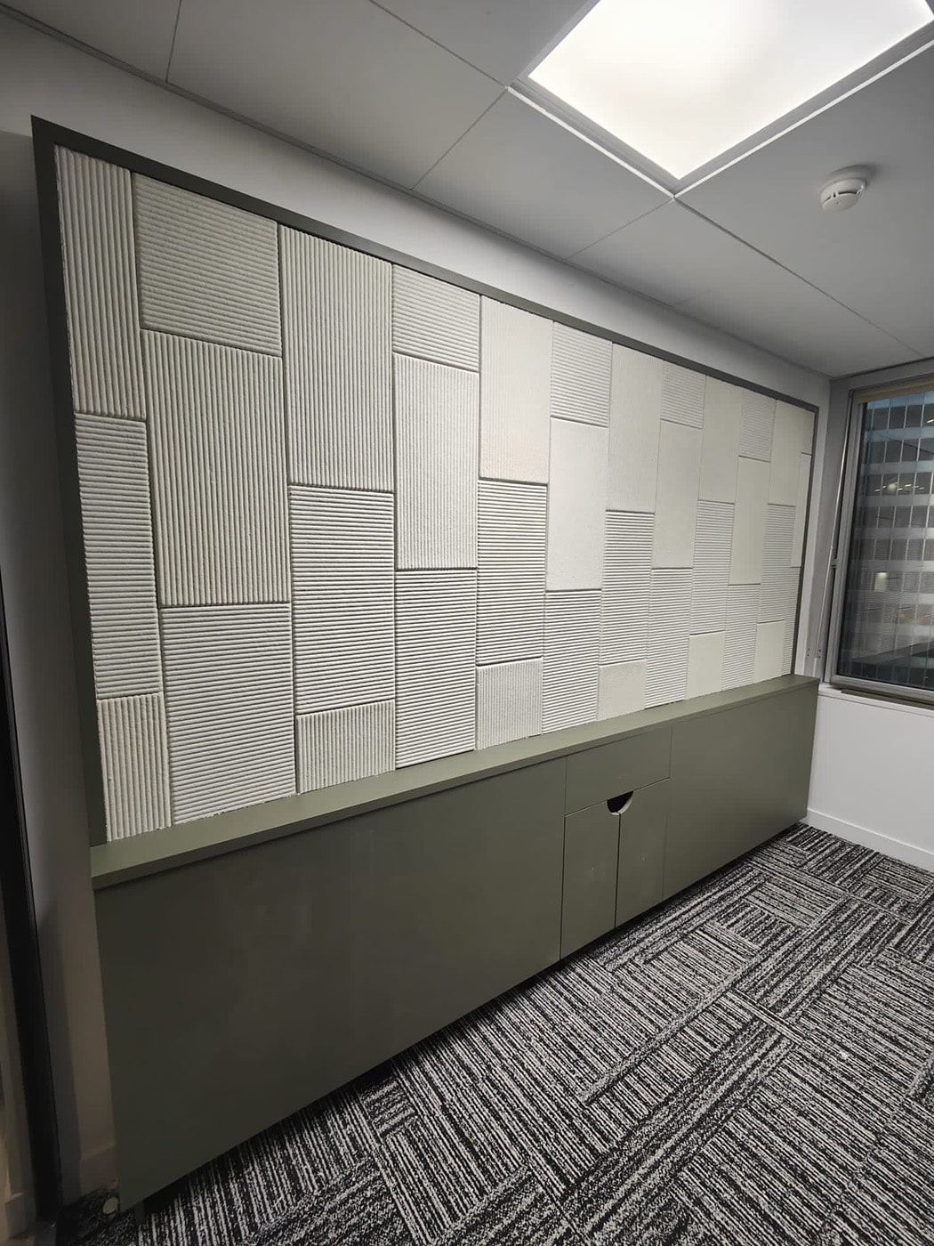 Au total, nous avons posé plus de 500m² de panneaux et revêtements acoustiques.